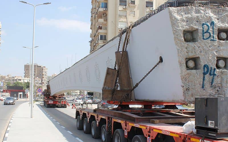 This bridge in particular represents a kind of challenge, represented by the use of pre-cast and stress beams with a total of 21 V-shaped beams, each of which ranges in length from 40-45 m and Empty from the inside and weighing up to 225 tons. These beams are an alternative to the metal beams usually used in large lengths, in addition to providing 35% of the economic cost of the project.