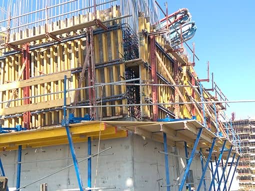 ACROW Crane Climbing is an ideal climbing system for skyscraper and high-rise buildings, such as lift-shafts, stairwells, perimeter façade walls, and large section piers in bridge construction.